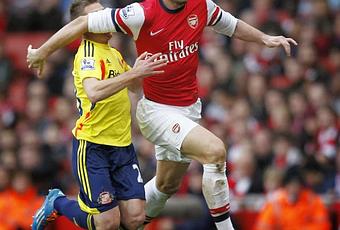 El Arsenal, frustrado por la derrota europea ante el Bayern Múnich del pasado miércoles (0-2), se desquitó hoy en la liga inglesa con el Sunderland, que salió goleado (4-1) del Emirates.La defensa organizada por el uruguayo Gustavo Poyetresultó menos espesa que la del actual campeón deEuropa, y los del francés Arsène Wenger encontraron facilidades para ponerse por delante en el marcador desde el minuto cinco, con un gol del francés Olivier Giroud.