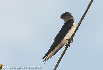 En los cables del tendido eléctrico de la ruta prov. nº 39 de la Provincia de Corrientes, mas precisamente en el puente sobre el Aguapeí es casi seguro que se pueden encontrar distintas especies de golondrinas para fotografiar, el día 6 de Noviembre no fue la excepción y pudimos registrar a dos especies y con buena cantidad de individuos en el sector. Solo fotografié a la Golondrina doméstica, aunque también estaban la Parda, la Ribereña y la ceja blanca.