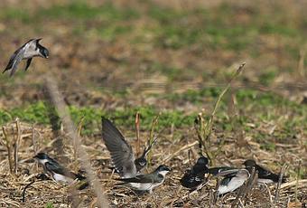 Que sobrevolaran el feed lot no sería una sorpresa porque abundan las moscas y las atrapan en el aire, sin embargo me llamó poderosamente la atención ver a las golondrinas posarse por turno y disputarse ciertos lugares en el campo raso, por lo general posaban en unos lugares donde había o que parecían ser restos de papeles o polietileno. Bajaban varias y parecían comer algo, supongo insectos pero no estoy seguro que era; lo que si me aseguré de tomar numerosas fotos, estas son algunas de ellas.