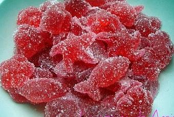 Una chuche riquísima que he visto en varios de vuestros blogs (Su, Anna y Peepa: gracias a las tres) y tenía que hacerlo: me encantan las gominolas!!!! Se pueden hacer del sabor que se quiera, y os aseguro que quedan tiernas y deliciosas. Os cuento cómo se hacen:- Poner en un cazo a fuego suave 1 sobre de gelatina de sabor, 2 sobres de gelatina neutra en polvo, 300 grs. de azúcar y 200 ml. de agua (o zumo o leche), procurando que no hierva, y removiendo continuamente, durante unos diez minutos. Pincelar con aceite de girasol los moldes pequeños de silicona (o rociar con desmoldeante). Verter la mezcla en los moldes y a los pocos minutos (antes de que empiece a cuajar), retirar con un tenedor una pequeña capa blanca que se va formando en la parte superior, y dejar reposar 12 horas a temperatura ambiente. Desmoldar y pasar por azúcar.