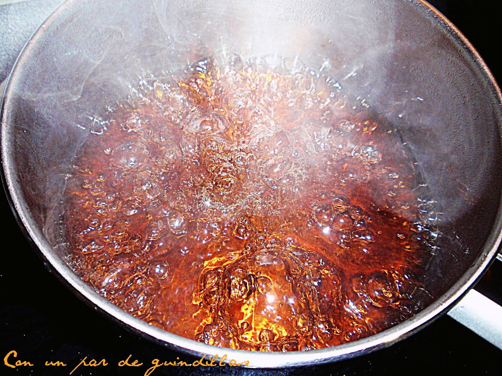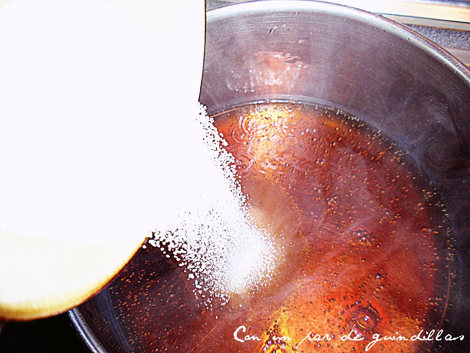 1.- Vertemos la Coca-Cola en un cazo, la mezclamos con el azúcar y removemos mientras se calienta.