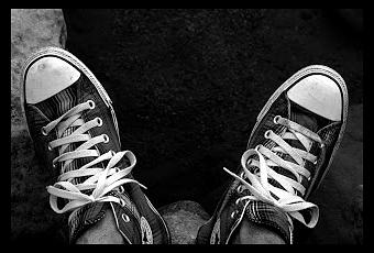 PORTADA:Zapatillas de cuadros rojas que parece que levitan porque no están asentadas en el suelo.