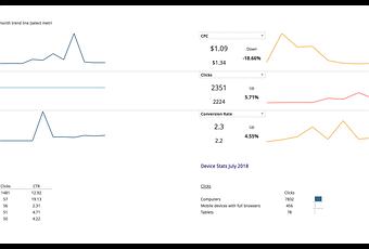 Esta plantilla de Data Studio compara los datos de campañas de Google Ads y Facebook Ads lado a lado. En ella podrás ver una descripción general del costo, impresiones, clics y conversiones en cada plataforma y una tabla que muestra cómo ha sido el rendimiento de las campañas individuales.