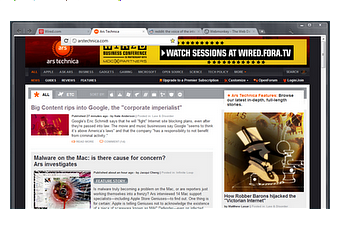 La interfaz de Chrome siempre se ha caracterizado por estar diseñada a partir del minimalismo. En los esfuerzos por lograr una apariencia cada vez más limpia, los desarrolladores del navegador siguen experimentando formas de lograr que mejore la imagen y ahora lo hacen a través de ocultar la barra de navegación. Ars Technica reporta que la opción de ocultar la barra de navegación es parte del proceso experimental y se encuentra presente en la versión preliminar de desarrollo de Chrome 13, y muestra un poco de lo que los desarrolladores de Google tienen en mente. La barra de navegación puede ser ocultada por completo para dejar solamente la barra de tabs, el botón de menú y la página en la que estás navegando.