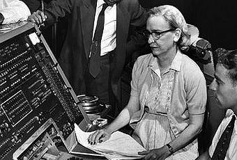 Grace Murray Hopper (1906-1992), científica en computación y Contraalmirante de la Marina de los Estados Unidos, fue una de las primeras programadoras de las computadora Harvard Mark I. También conceptualizó la idea de los lenguajes de programación independientes de las máquinas, creando el primer compilador para un lenguaje de programación, lo cual llevó al desarrollo de uno de los primeros lenguajes de programación modernos, el COBOL.