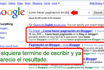 Si activamos Google Instant nos aparecerán los resultados más probables mientras vamos escribiendo en la caja de búsquedas, a la vez que también van cambiando los resultados con cada letra que añadimos.