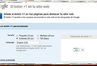 Para insertar el botón en una página web o blog, tan sólo tenemos que acceder al sitio Webmaster Tools de Google o al formulario desde el que podemos configurar el botón para nuestro sitio web. Mediante este formulario, podemos elegir el tamaño del botón y el lenguaje, además de otras opciones más avanzadas que nos permitirá dar más interacción al botón. El código resultante es el que tendremos que copiar y pegar en nuestra página.