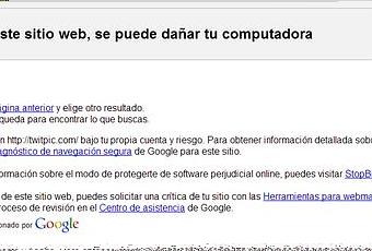 Haciendo una búsqueda en Google por el término TwitPic por desde cualquier navegador, cuando tratan de seguir el enlace al sitio oficial de Twitpic, Google Malware lo bloquea y no permite entrar al mismo, como pueden observar en la imagen anterior.