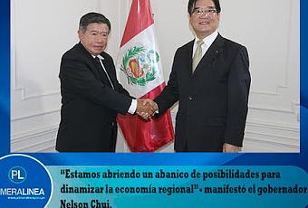Interés del gigante asiático es ejecutar obras en sector agrícola, turismo y vías de comunicaciónTras considerar de aliados estratégicos a los empresarios y grupo de profesionales del gigante asiático – el gobernador regional Nelson Chui Mejía, calificó de productiva la reunión con inversionistas de la provincia de Hebei de la República Popular China.