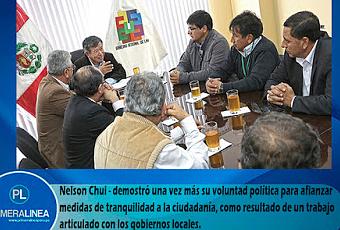Inversión superaría los 17 millones beneficiando a Huacho, Huaura, Santa María y CarquínUna mesa de diálogo con los alcaldes de la provincia de Huaura –entablo –el gobernador regional de Lima, Nelson Chui Mejía. Durante la reunión – acordaron retomar el proyecto integral de seguridad ciudadana.