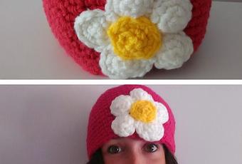 Ya llega el frio!!!! y los gorros...salen a la luz!!! qué alegría!!! éste pertenece a colección gorros flor cósmica. En color rosa pink con una gran flor, margarita de to be or not to be...