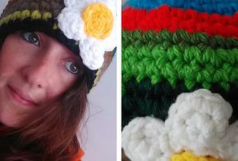 Hola pecos@s!!! qué dias mas frios!!! pues...los gorros flor cósmica son todo un acierto para estos dias, en este caso es un gorro muy colorido que nos alegra hasta los dias mas frios.