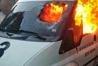 (Furgoneta policial en la que iban los agentes que intentaron asaltar La Directa, según un tuit de @ciutatinvisible)