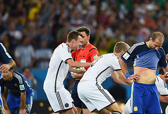 La polémica de la tarde llegó con un pase largo para Higuaín, que fue derribado por Neuer que le dio un rodillazo en la cara dentro del área, pero Rizzoli consideró que fue falta del argentino. Esa jugada bajó psicológicamente a los sudamericanos, que nuevamente vieron a Alemania como dueño de la pelota y decidido a ganarlo.