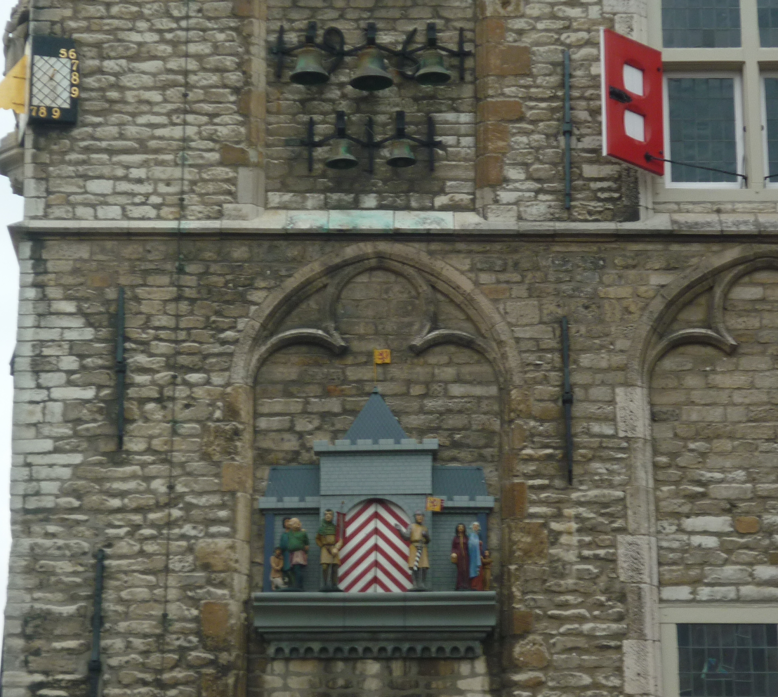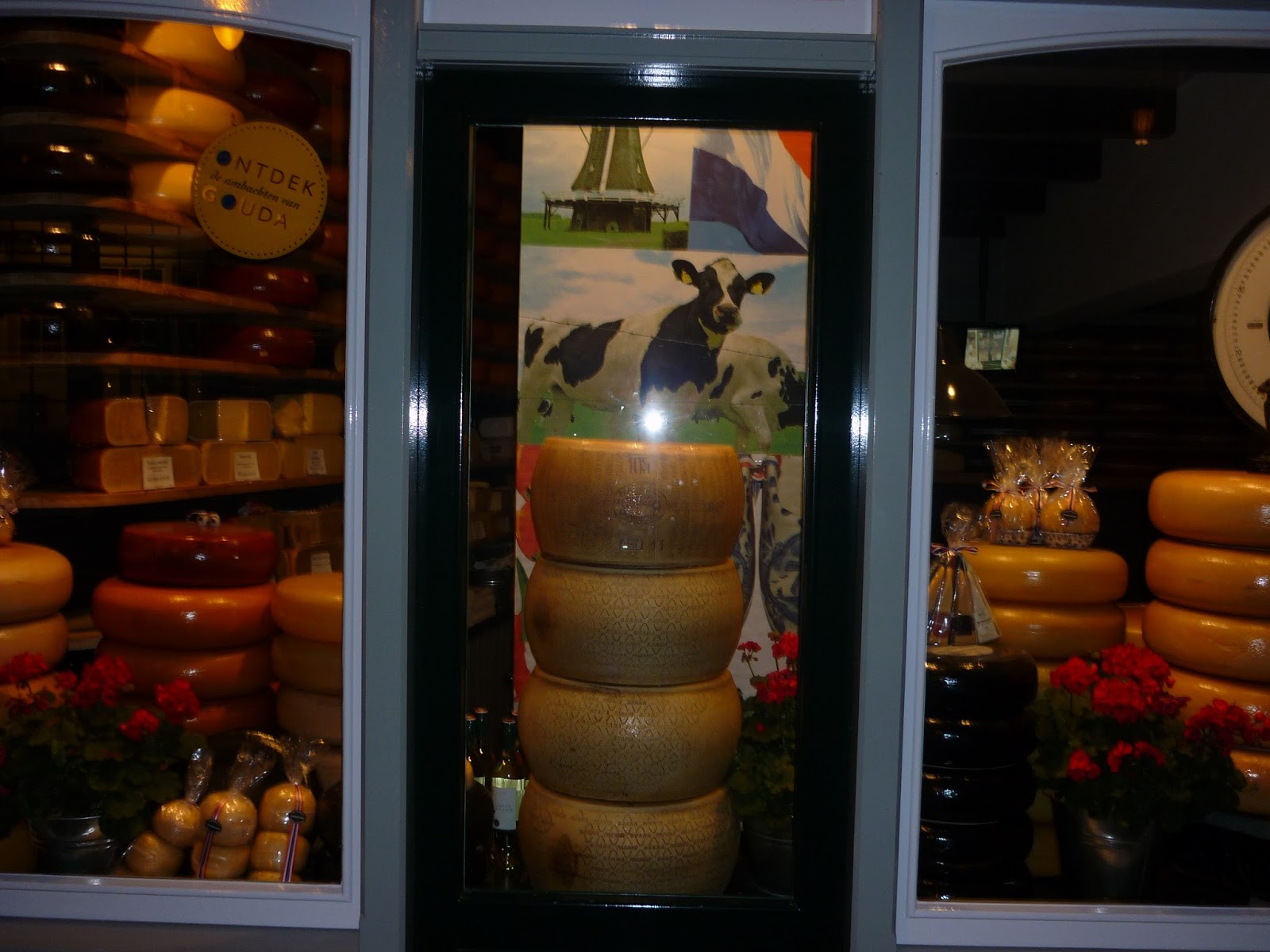 Si erráis en el día o como yo, lleváis en los genes unos horarios diametralmente opuestos a los de nuestros madrugadores anfitriones neerlandeses, lo único relacionado con queso que vais a ver es un par de tiendas cerradas como las de la foto. Como apetecen esos quesos tan variados desde fuera, puñeta. Sin embargo aunque deis en la diana y lleguéis en pleno mercado, lo que más os va a llamar la atención de la plaza no van a ser los quesos. Porque en el medio y medio se alza nada menos que... el castillo de Disney.En realidad se trata del ayuntamiento o stadhuis, que data del siglo quince y es uno de los edificios de estilo gótico más antiguos de los Países Bajos. Y la verdad es que si no lo conoces de antemano su aparición sorprende por su emplazamiento en plena plaza y sus diferencias arquitectónicas con los típicos edificios holandeses. Entrar cuesta alrededor de un euro (si eres avispado y llegas en horario de apertura, entiéndase). Por si fuera poco, el ayuntamiento nos reserva otra sorpresita. En uno de sus laterales encontramos las figuras cromadas de cuatro o cinco personajes alrededor de una puertecita, todo ello coronado por un reloj. Cerca del conjunto, una placa nos cuenta que el mecanismo se activa dos minutos después de todas las horas puntas y medias para presuntamente mostrarnos un bailecito o quién sabe qué otra representación llevada a cabo por los monigotes protagonistas. Este carillón, que ni siquiera es original del edificio (fue donado por un director de una compañía de seguros, muy simpático él, en la década de los sesenta) es en realidad el troleo más grande que las gentes de Gouda ofrecen a sus incautos visitantes.