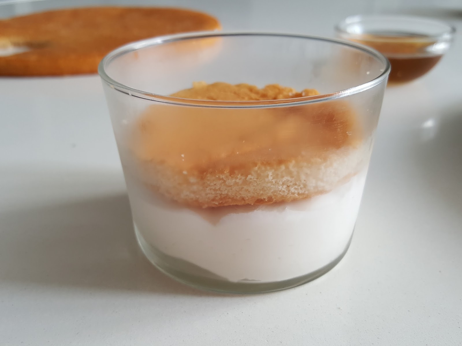 Una plancha de Bizcocho, o sobaos, o magdalenas...Natillas o crema pasteleraNata montada, pero poco azucaradaAlmíbar o vino Pedro XiménezAzúcar para espolvorear
