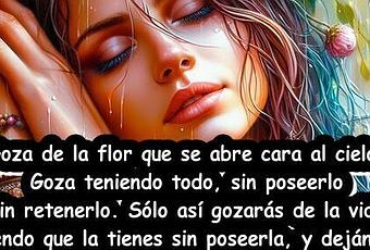 Goza de la flor que se abre cara al cielo. Goza teniendo todo, sin poseerlo y sin retenerlo. Sólo así gozarás de la vida, sabiendo que la tienes sin poseerla, y dejándola correr sin retenerla. Te deseo que tus momentos sean de paz y todos tus días sean grandiosos.