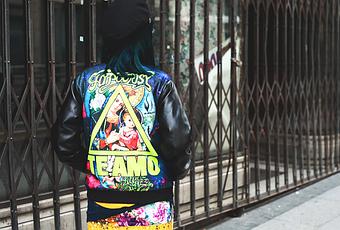 Im wearing: Vintage cap / Wonderland Wigs hair / Kling top / Zulamimi Land Jacket / Estela Balan Skirt / Shana tights / Nike sneakers from Numbers Madrid / Glasses Etnia Barcelona / Photos Miriam Rupy.