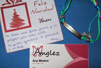 Este post es para darle las gracias a una persona muy especial. Se trata de Ana Mestre. La he conocido hace poco en este mundillo blogguer y la verdad es que he de decíos que es una chica como las hay pocas.Justamente el día 5 de enero, fue un regalo de Reyes inesperado, me llego una carta con una felicitación y una pulsera muy chula, creo que las hace ella, de su parte. Podéis verlo en la foto. La pulsera lleva un mensaje precioso, "vivir es increíble". Al parecer y como premio ha mandado estas felicitaciones a sus top comentaristas y yo he sido una de ellas. Me ha encantado el detalle. Por eso quería darle las gracias. Ah!!! Se me olvidaba, si no lo habéis hecho todavía tenéis que pasaos por su blog, es estupendo, igual que ella. Os dejo su link http://www.amglez.com/.