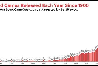 Son los juegos de tablero que han salido al mercado desde 1900 hasta la actualidad. Aunque los datos eran esperables a poco que conozcas de juegos de tablero y tengas unos años (30-40, por aquello del boom de estos juegos en los 70 y 80, con marcas como Parker, MB,Mattel, etc), no deja de ser impactante verlo en gráfica, sobre todo el estirón realmente brutal que pega a inicios del siglo XXI. Aunque los datos provenientes de las fuentes son sólidos y las fuentes propiamente dichas de gran prestigio, creo que el verdadero total real, sobre todo en los últimos años con los mecenazgos en masa protagonizados por creativos en solitario y lanzamientos de juegos gratuitos/tipo "amenities" por parte de compañías indies o de paises que generalmente no salen en los gráficos habituales, puede ser aún mayor si cabe. Pero con esto, "solo" con esto, la gráfica te deja con la boca abierta.