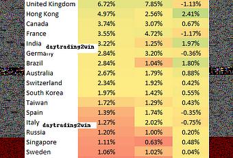 Al hilo de lo que os puse anteriormente ,os pongo aqui los datos pormenorizados ,aqui podeis las capitalizaciones de los mercados, el pais que mas crecio en los ultimos 5 años fue China con un 5,80% y el que mas decrecio EEUU -10,20%