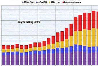 Aquí os pongo dos graficos sobre morosidad hipotecaria en EEUU ,el primero muestra como se esta ahora mismo muy cerca de máximos ,el 14,25% de los prestamos hipotecarios esta con algún tipo de mora en el segundo cuatrimestre del 2010(con ajuste estacional), y en el segundo muestra la morosidad por Estados ,Florida y Nevada encabezan el ranking .un saludo