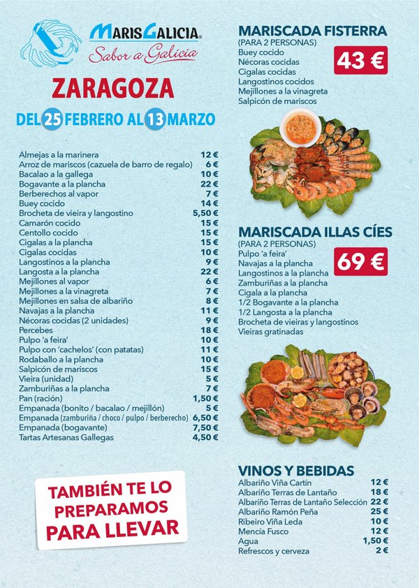 En Zaragenda nos cuentan que del 25 de febrero al 12 de marzo La Gran Fiesta del Marisco vuelve a Zaragoza este 2016 de la mano de MarisGalicia con su gran carpa al solar de Vía Universitas que tanto juego está dando en los últimos meses. En esta feria de la gastronomía gallega, podrás degustar en Zaragoza el mejor marisco de Galicia.