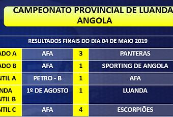 Gran fin de semana para los Infantiles de la Escuela de Fútbol AFA Angola. El Infantil A se impuso de forma clara y contundente en su visita a Petro B (1-8), Meritoria empate de Luanda (1-1), también como visitante contra el Infantil A de 1ª de Agosto. Y por último contundente victoria del Infantil B de la Academia (4-0) frente a Escorpiões.