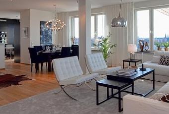Como hoy es día de fiesta (bueno, ya se que no en todos los sitios pero en Andalucía si :P) os traigo una súper – casa, de esas que casi casi de película. Se trata de un impresionante piso de nueva construcción (2013) en Estocolmo, Suecia. 156 m² repartidos en un salón comedor cocina semi-diáfanos, 4 dormitorios (3 dormitorios y 1 despacho), 2 baños completos y aseo, cuarto de lavandería, walk-in closet y balcones, con unas vistas impresionantes a la ciudad.
