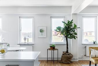 De las 6 ventanas en el salón destacar, que ninguna tiene cortinas o estores (solo los dormitorios las tienen), es algo típico nórdico, lo mismo que cada ventana tenga su repisa o alfeizar donde colocar plantas, adornos o puntos de luz de ambiente en forma de lamparitas o portavelas.