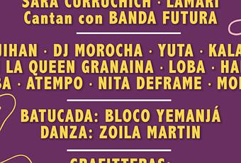 Amenizará el festival Bloco Yemanyá y su rítmica batucada, Zoila Martín con su expresiva danza, Atempo (Cuba), Hafa (Madrid) con ritmos cubanos y músicas del mundo. Representación del arte mural con las grafitteras Marie Die, Beijaflor, Angelo, Kron. Y para finalizar el apartado musical, un broche de hermandad donde la Banda Futura (Cuba-Madrid) compartirán espacio en una actuación final con todas las artistas a la vez.