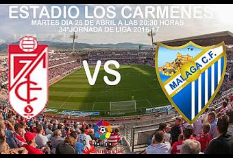 Jornada de liga entresemanas, y el Málaga visita el nuevo los Carmenes para enfrentarse al Granada cf. este martes a las 20:30 horas para disputar la numero 34.