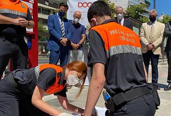 Durante la inauguración de estos tótems equipados con sendos desfibriladores DOC de B+SAFE de Grupo Almas Industries, se ha realizado un simulacro en el que han participado bomberos y empleados de comercios del entorno.