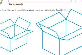 Actividad a realizar: Recorta las figuras del oso grande y pequeño. Luego, pégalos en cada caja según su tamaño.