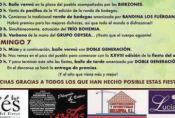 El sábado misa solemne, baile vermú, ronda de bodegas. actuación del trío Behemia y gran verbena con Odysea. Ya el domingo 7 de agosto, misa y baile vermú, fiesta del agua y fin de fiesta con un baile de tarde. Tienes el programa completo en la imagen.