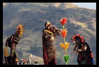 Los incas consideraban a su rey, el Sapa Inca, como el "hijo del sol". Muchas formas locales de adoración persistieron en el imperio, la mayoría de ellas relacionadas con las sagradas Huacas locales, pero los líderes incas alentaron el culto al sol de Inti - su dios del sol - e impusieron su soberanía por encima de otros cultos como el de Pachamama.