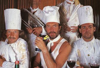 Barre, Pegg, Anderson, Perry y Allcock, vestidos como en la humorada que da comienzo al espectáculo.