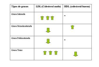 En conclusión, para una dieta saludable no debemos eliminar las grasas de nuestra alimentación (hasta un 30% del valor calórico total deben ser grasas) sin embargo debemos elegir mejor las grasas monoinsaturadas y poliinsaturadas frente a las grasas trans y saturadas. Aquí les resumo en una tablita toda esta teoría: