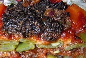 Gratinado de habicholillas con tapenade vegetariano.