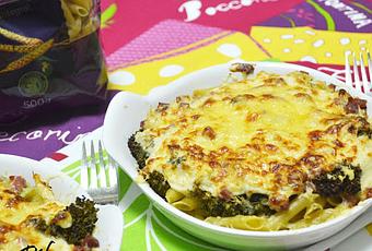 Como veis, continúo elaborando recetas con pasta, aprovechando el lote de productos que me enviaron desde Pastas Romero. Si el otro día utilizaba las margaritas vegetales como base de una fresquita ensalada de pasta con manzana, queso y beicon, en esta ocasión, he empleado los macarrones integrales N5 para preparar un gratinado con brócoli y taquitos de jamón serrano.