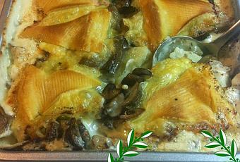 Hoy tocan las versátiles patatas. No sé qué hubiera sido de nosotros sin ellas. Los fines de semana siempre cocino algún plato que las incluya y el resultado es la ola inmediata. Ya he incluído recetas similares a ésta. Realmente es una Tartiflette tuneada a la que en lugar de la cebolla y el bacon como en la genuina que publiqué hace poco (pincha aquí), lleva champiñones y setas con un toque de romero.