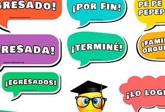 Los photo props o carteles para descargar gratis tienen palabras o frases con la temática graduación, egresados o egreso de primaria y también de secundaria. En Argentina los chicos y chicas se gradúan al finalizar sexto o séptimo grado de primaria y al culminar quinto o sexto año de secundaria. En otros países la escuela secundaria se llama "preparatoria" y puede variar los años en que los chicos se reciben y obtienen el título.