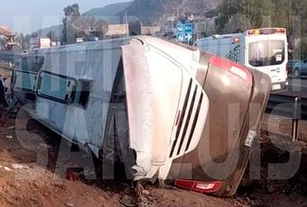 La mañana de este lunes, un grave accidente sacudió la tranquilidad de la Carretera 57, dirección Querétaro, específicamente en el kilómetro 57, cerca de la entrada a Lourdes, a pocos kilómetros de Santa María del Río. Un autobús de pasajeros se vio involucrado en una volcadura que resultó en al menos 20 personas lesionadas, dos de ellas con heridas de gravedad, según los primeros informes de las autoridades.