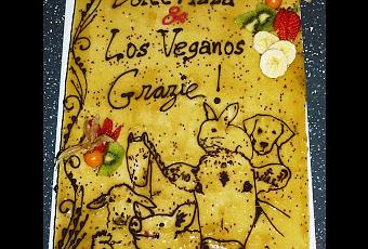 Pastel 100 % vegano, realizado para la inauguración del segundo restaurante Dolce Pizza & Los Veganos. Personalización basada en una de las imágenes que se encuentra dentro del restaurante.