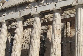 Se abre el espacio, un suelo lleno de desniveles y guijarros te recibe, pero igual caminas indiferente porque frente a ti aparece el monumento más famoso del mundo occidental. EL PARTENON. Sí, de nuevo pienso en aquello de ¿estoy en verdad aquí? Lleno de andamios que tratan de sostenerlo como a un viejo cansado y maltrecho pero lleno de sabiduría, nada es suficiente para expresar la emoción que inspira tal construcción. Pensar que todo esto no era sino decorado, parte inevitable de la vida diaria de gente corriente. Bendito Pericles, que los dioses te tengan vacilando a su lado por la grandiosa idea que tuviste de reconstruir todo esto. Aunque luego ya nosotros nos hayamos encargado de desmantelarlo.