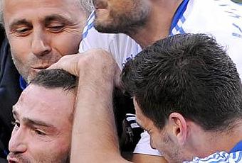 Poco después, el entrenador de Grecia Otto Rehhagel mandó a la cancha al delantero Georgios Samaras del Celtic de Glasgow por el defensa Sokratis Papastathopoulos.