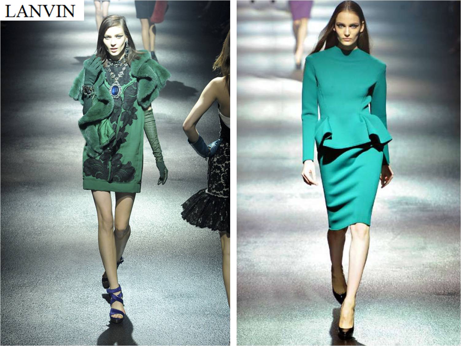 Entre los diseñadores de la alta costura que han apostado por este color para esta temporada se encuentran Lanvin y Aquilano Rimondi, quienes os harán eclipsar con verdes deslumbrantes. A continuación os comparto algunos diseños de estas colecciones.