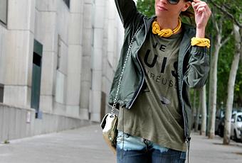 parka: naf naf/ camiseta: h&m ss 2013/ vaqueros: mango DIY/ Collar y pulsera: oh my hands (aqui )