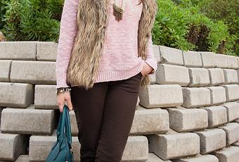 Hoy os enseño un look muy casual, que me gusta mucho gracias al toque de elegancia del chaleco de pelo y los tacones marrones y el toque de color del bolso. Un outfit armónico, sencillo.