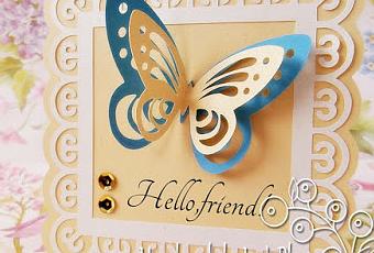 Hello Friend Greeting Card.Me encantan las mariposas; a la hora de pensar en un adorno para las tarjetas y/o invitaciones siempre vienen a mi mente.